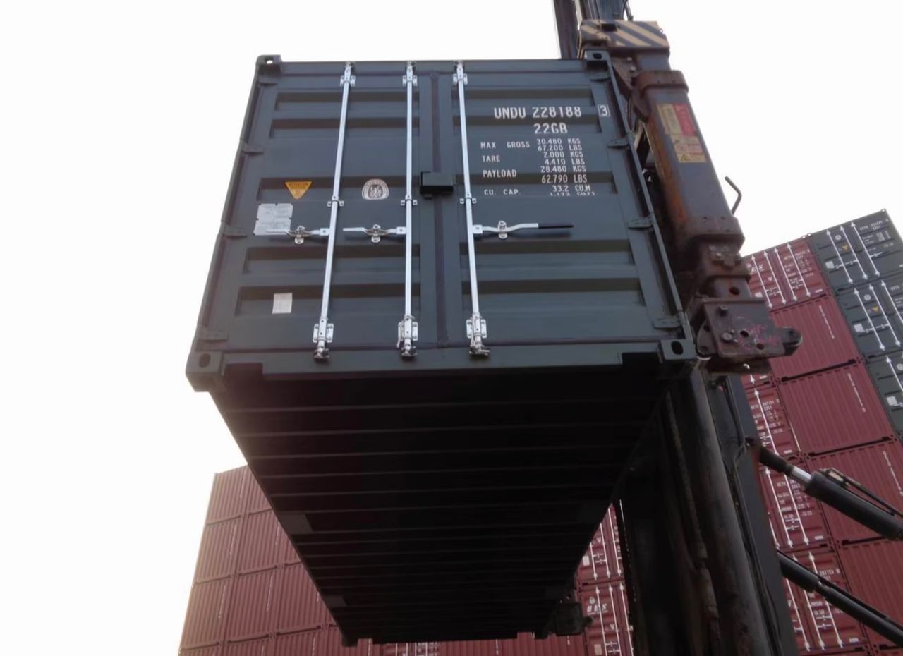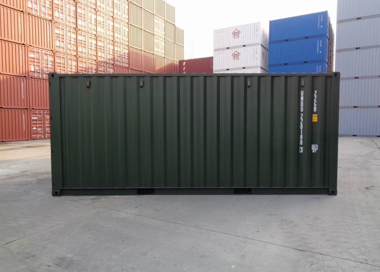 Ce conteneur de type 22GB se distingue par son excellent état structurel et sa configuration optimisée pour le transport lourd ou le stockage sécurisé de haute qualité. Sa finition vert foncé offre une esthétique discrète et professionnelle.